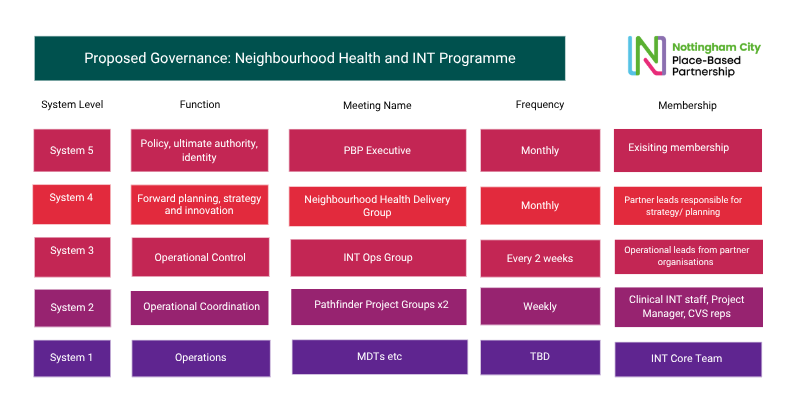 Proposed Governance: Neighbourhood Health and INT Programme