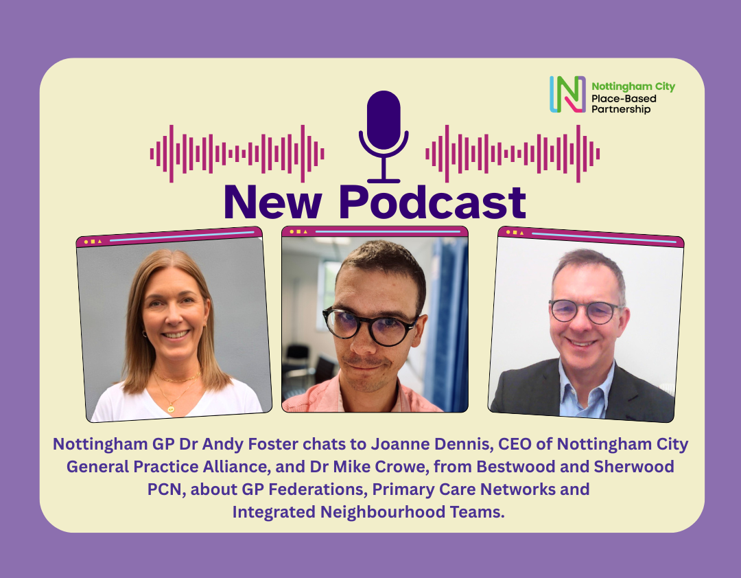 Joanne Dennis, CEO of Nottingham City General Practice Alliance, and Dr Mike Crowe, Clinical Director of Bestwood and Sherwood Primary Care Network, talk to Andy about GP Federations, Primary Care Networks, and Integrated Neighbourhood Teams.